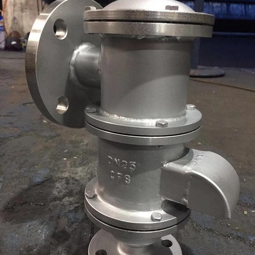 带接管呼吸阀是安装在固定储罐顶上,起减少油品蒸发损耗,控制储罐压力及阻止外界火焰传入的作用。具有通风量大,泄漏量小,耐腐蚀等特点,并有静电接地线,使该阀与罐体保持等电位。目前在接管式呼吸阀容易产生静电的部位,做了技术改进添加了聚四氟乙烯垫片所以不需要接静电排放装置。